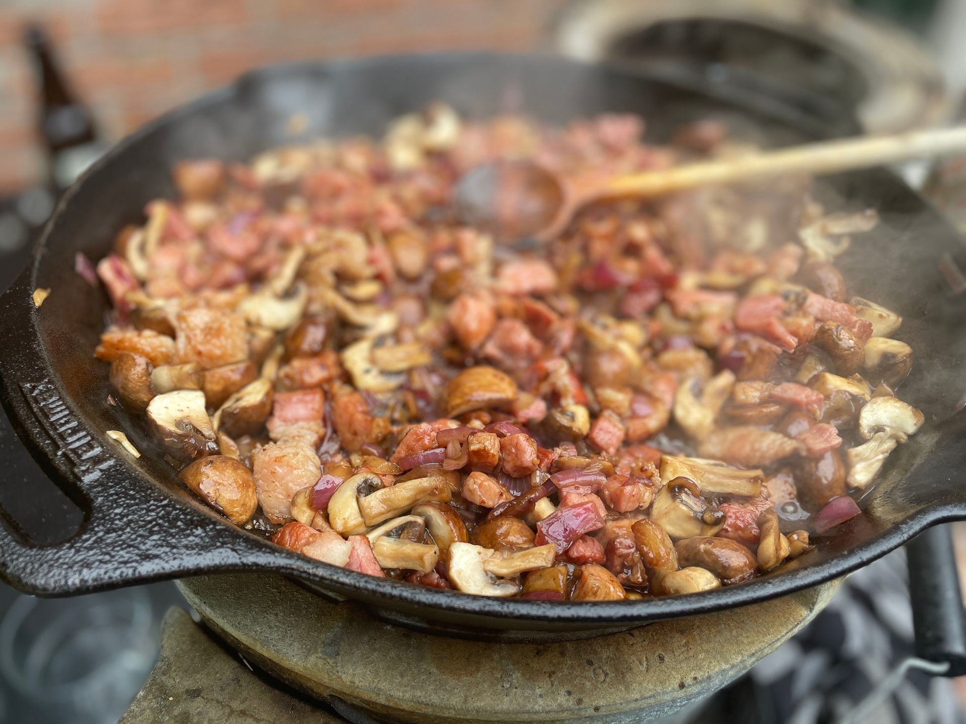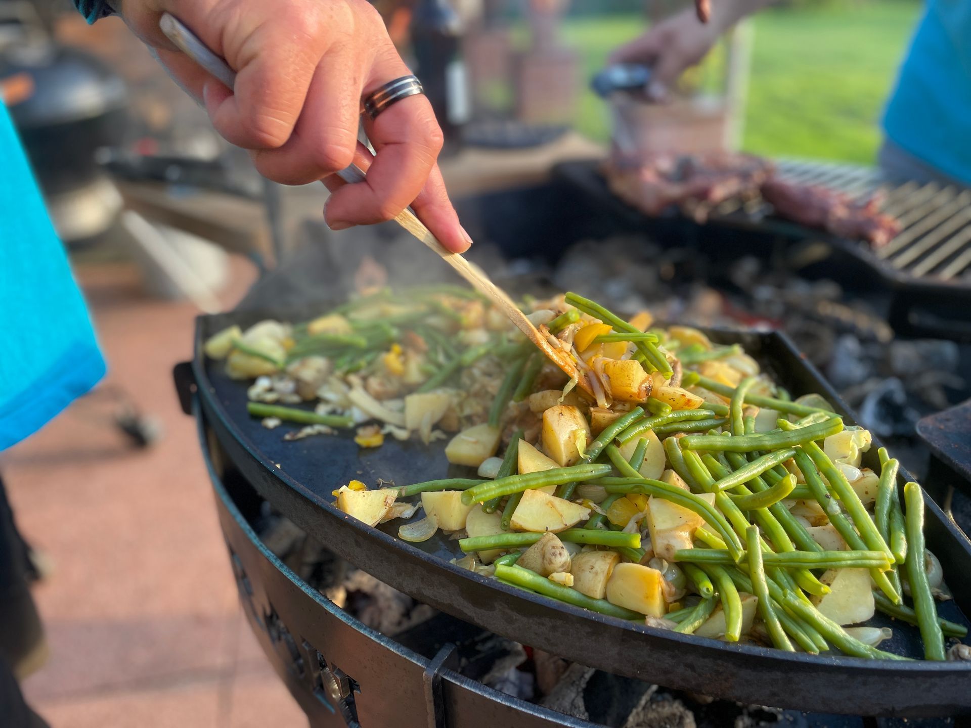 Als je een beetje op ons lijkt, loopt het water je vast al in de mond. Hier zijn een aantal gerechten die we bereiden op open vuur, de Napoleon of de Bastard. Maar we maken ook lekkere salades en vegetarische gerechten.